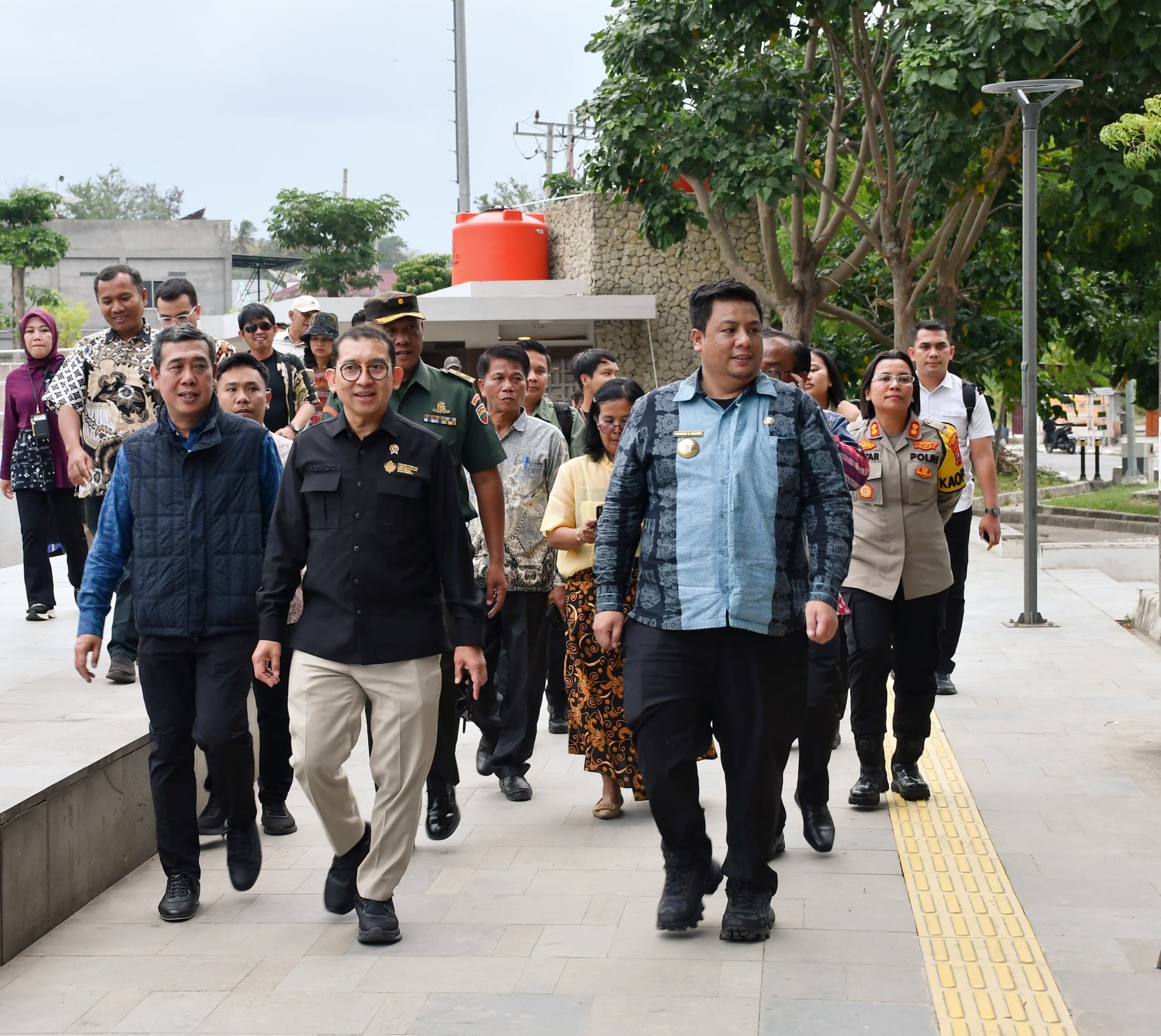 Samosir-|Rakyat Nusantara|Bupati Samosir Vandiko T. Gultom bersama Wakil Bupati Ariston Tua Sidauruk menyambut kedatangan Menteri Kebudayaan Republik Indonesia, Fadli Zon, di Cagar Budaya Huta Simarmata, Desa Hariara Pohan, Kecamatan Harian, Jumat (7/2).