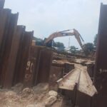 KAB, BEKASI |Rakyat Nusantara|- Proyek pembangunan Bendung BSH-0 yang berada di perbatasan Desa Kalijaya Cikarang Barat dan Desa Sukajaya Kecamatan Cibitung saat
