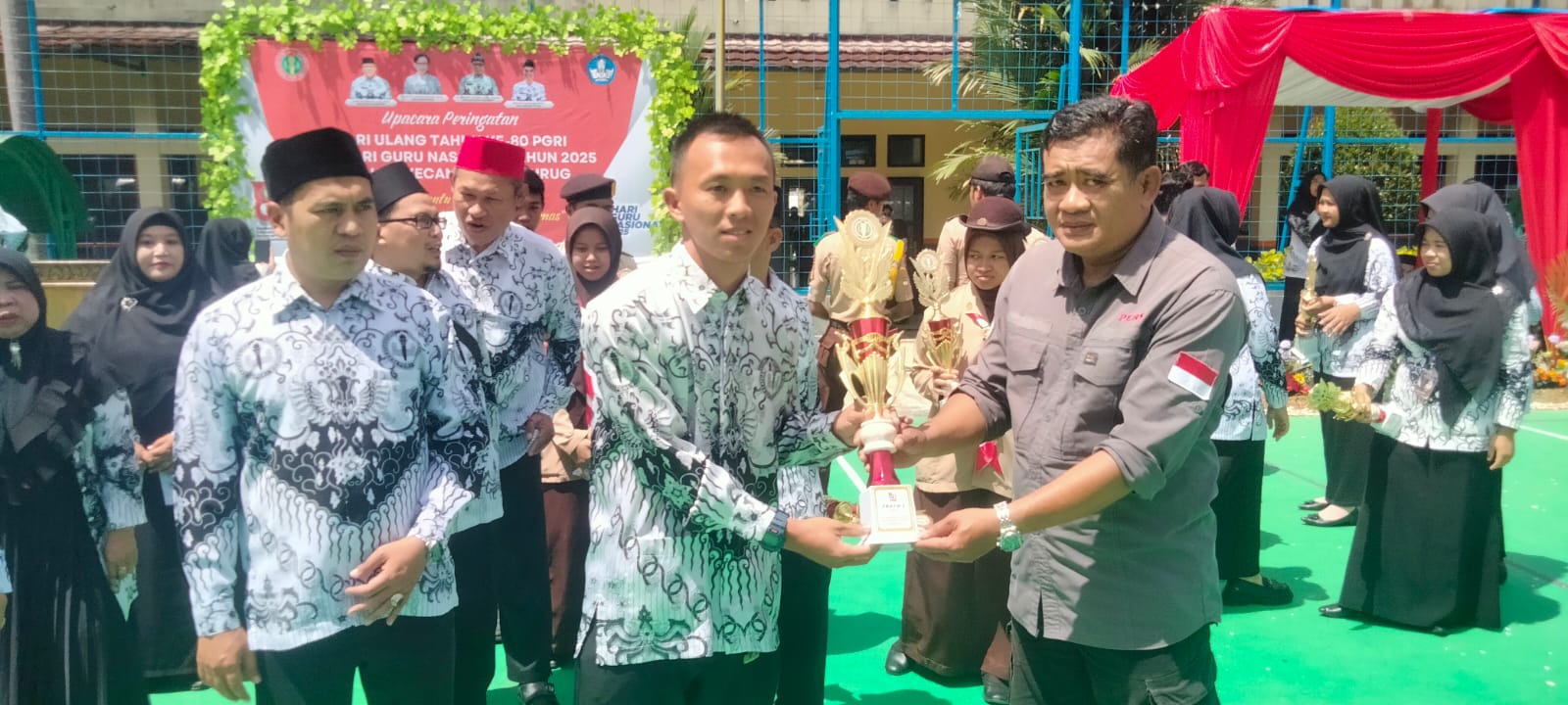 Sukabumi |Rakyat Nusantara| – Peringatan Hari Ulang Tahun ke-80 Persatuan Guru Republik Indonesia (PGRI) sekaligus Hari Guru Nasional (HGN) tahun 2025 tingkat Kecamatan Cicurug, Kabupaten Sukabumi, berlangsung khidmat dan penuh kekeluargaan. Upacara dipusatkan di halaman SMAN 1 Cicurug pada Selasa (25/11/2025), menghadirkan ratusan guru dari berbagai jenjang pendidikan.